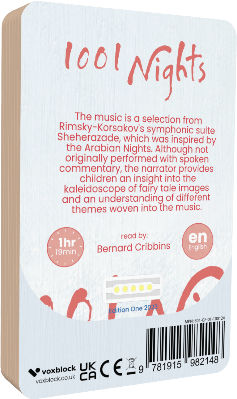 The music is a selection from Rimsky-Korsakov's symphonic suite Sheherazade, which was inspired by the Arabian Nights. Although not originally performed with spoken commentary, the narrator provides children an insight into the kaleidoscope of fairy tale images and an understanding of different themes woven into the mu