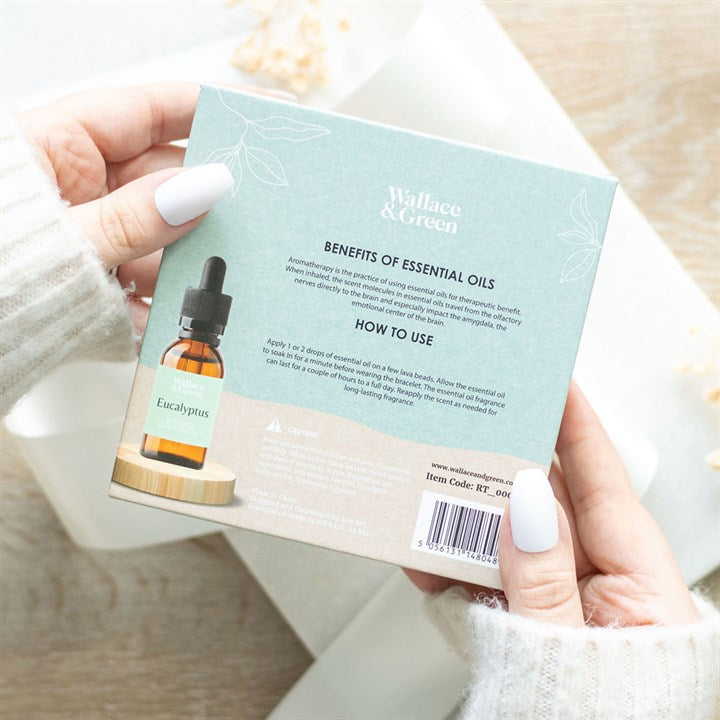 This abundance lava bead bracelet and essential oil gift set uses aromatherapy to enhance the metaphysical healing power of crystals. Crafted with natural amazonite and lava beads, the bracelet serves as a diffuser for the included eucalyptus oil, promoting calm and clarity. The addition of a four-leaf clover charm sym