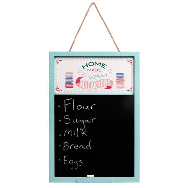 The Amelie chalkboard is a quirky way to post reminders, shopping lists, recipes and even house rules. Made from tough and lightweight MDF, it is easy to display on the wall thanks to the twining rope. The rope's natural colour complements the light blue.