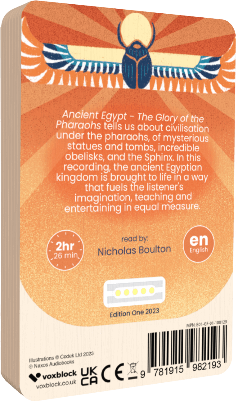 Ancient Egypt: The Glory of the Pharaohs tells us about civilization under the pharaohs, of mysterious statues and tombs, incredible obelisks, and the Sphinx. In this selection, the ancient Egyptian kingdom is brought to life in a way that fuels the listener’s imagination, teaching and entertaining in equal measure.A V