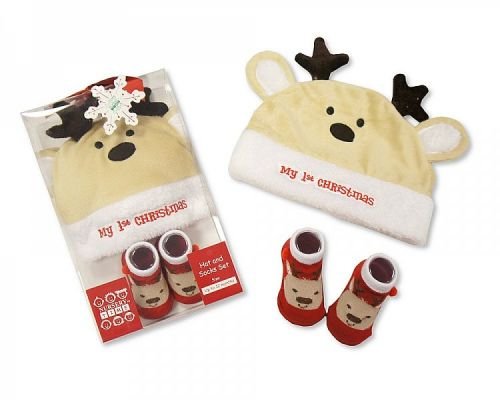 - Baby Hat and Socks Christmas Gift Set - Reindeer
