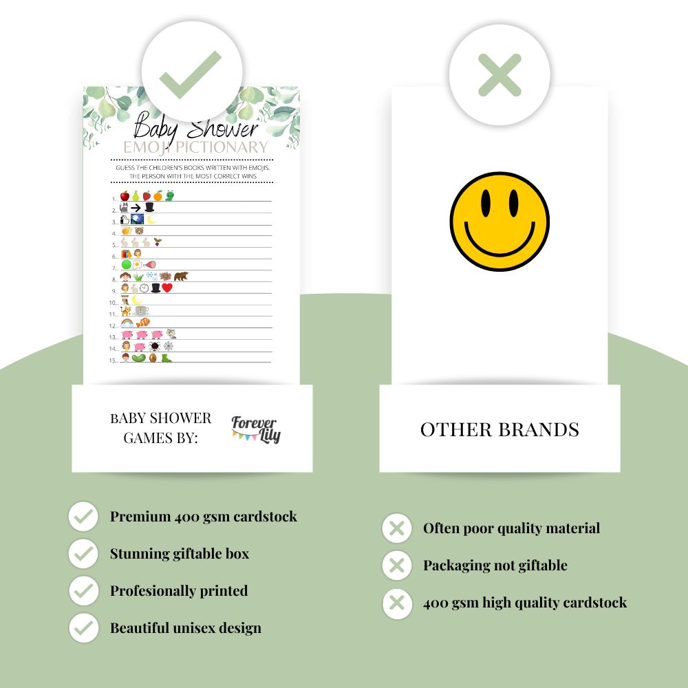 Tailored for Every Gathering: Available in 10, 20, 30, and 40 guest packs, our Baby Shower Bundle accommodates gatherings of all sizes. Each game is expertly printed on A6 400gsm double-backed cards, featuring a professional matte finish. This not only provides a high-quality feel but also makes the cards perfect for writing on, allowing your guests to engage fully in the excitement.