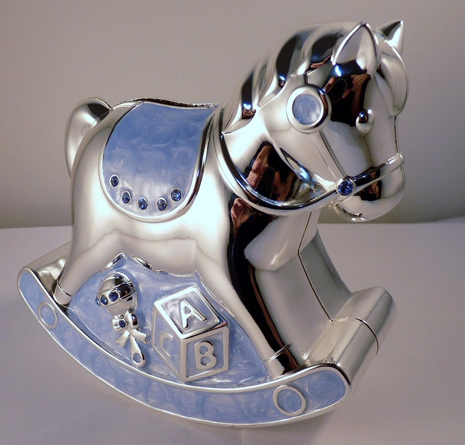 Blue Rocking Horse Money Box - Silver Plated - Leonardo Collection