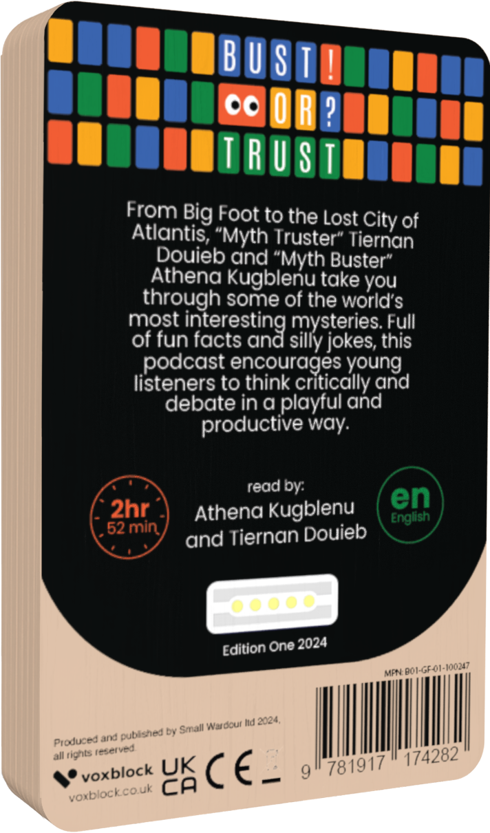Bust or Trust is a podcast for curious kids’ who’d like to get to the bottom of some of the world’s most interesting mysteries. From Big Foot to the Lost City of Atlantis, “Myth Truster” Tiernan Douieb and “Myth Buster” Athena Kugblenu take you through each case. It’s up to the Chief Detectives listening to decide if they bust the myth or trust it!