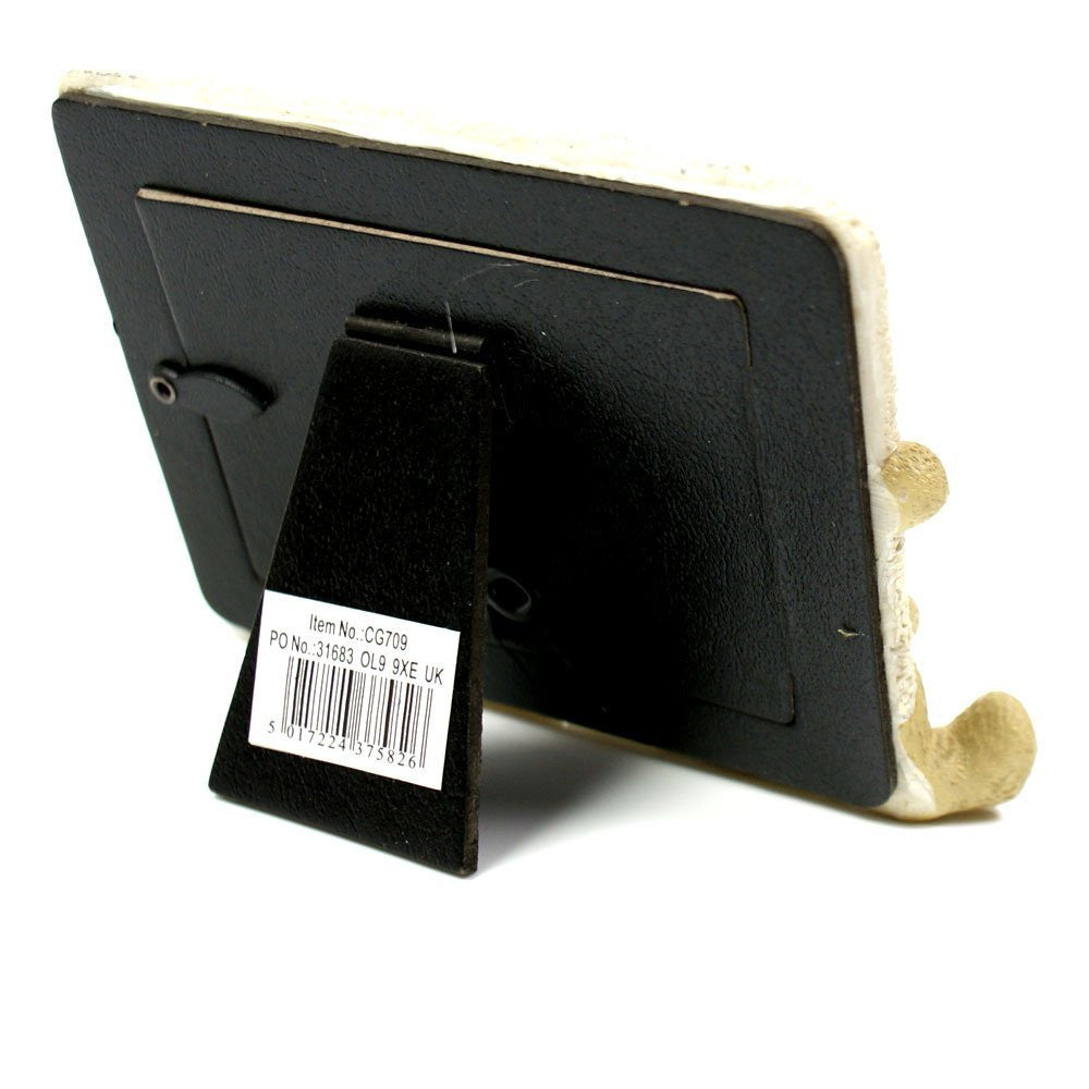 - This cute little resin frame displays a 3" x 2" photograph and has a teddy bear in the corner clutching a blanket.