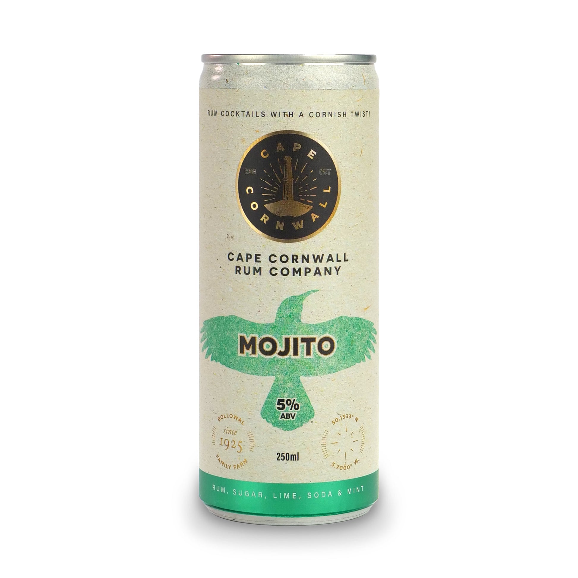 Savour the taste of a classic mojito cocktail with Cape Cornwall Rum Company's ready-to-drink canned mojitos.