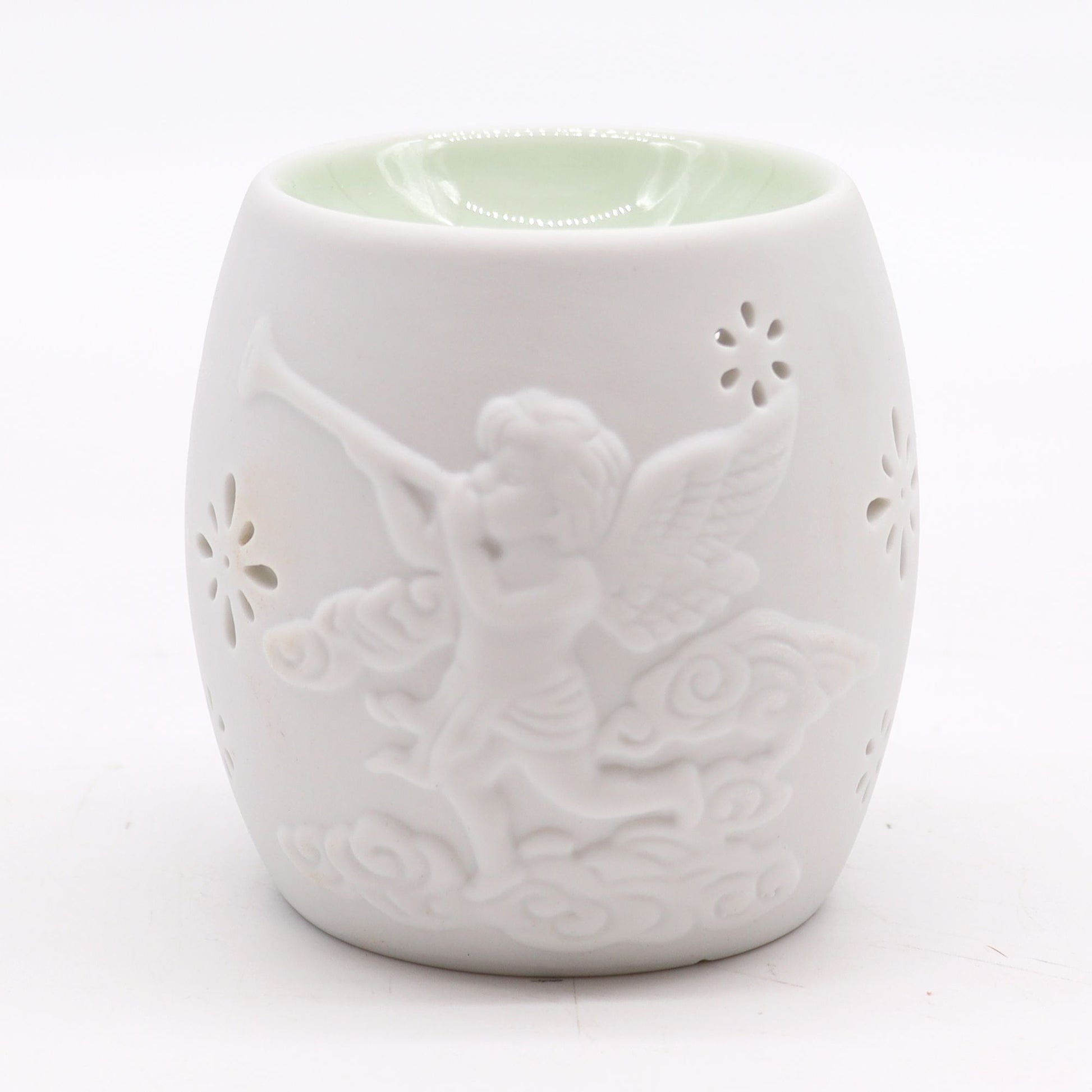 Ceramic Classic White Oil Burners. These oil burners have been finished with the best available ceramic, to give that high-quality standard. These oil burners make a great gift idea for any special occasion due to the quality and value, sold in single pieces. White Ceramic Cherubs Oil Burners are great for use with Fr