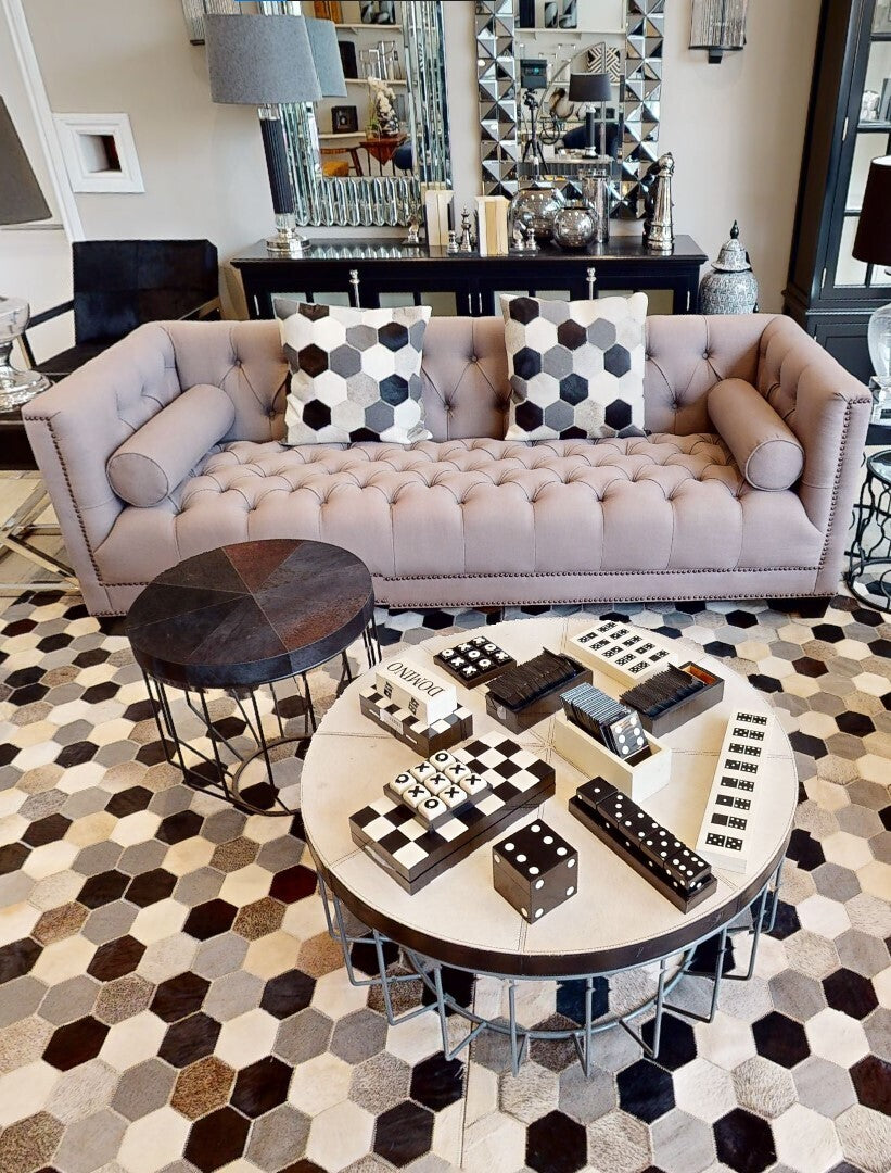 Made from premium resin, this dice box will add a three-dimensional visual display on a coffee table or desk with its geometric design. Topped by a removable lid, this game set includes a box and five dice in a black and white finish offering a playful accent.