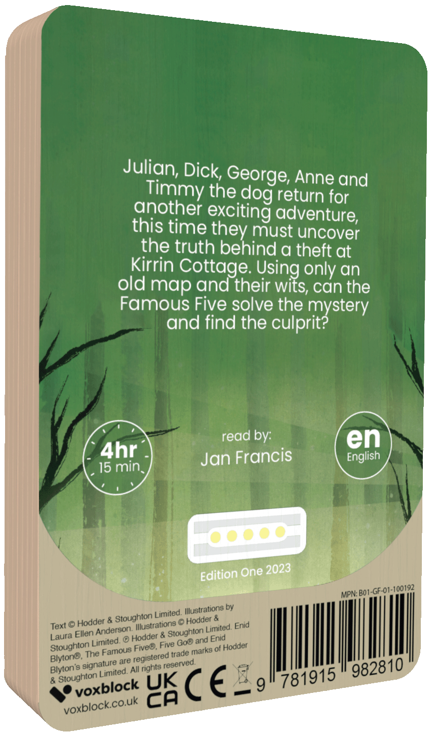 Julian, Dick, George, Anne and Timmy the dog return for another exciting adventure! In the second instalment of the Famous Five's adventures, the group spend their Christmas Holidays at Kirrin Cottage getting extra tutoring, when suddenly some secret documents go missing! But while they are meant to be studying, the Fi