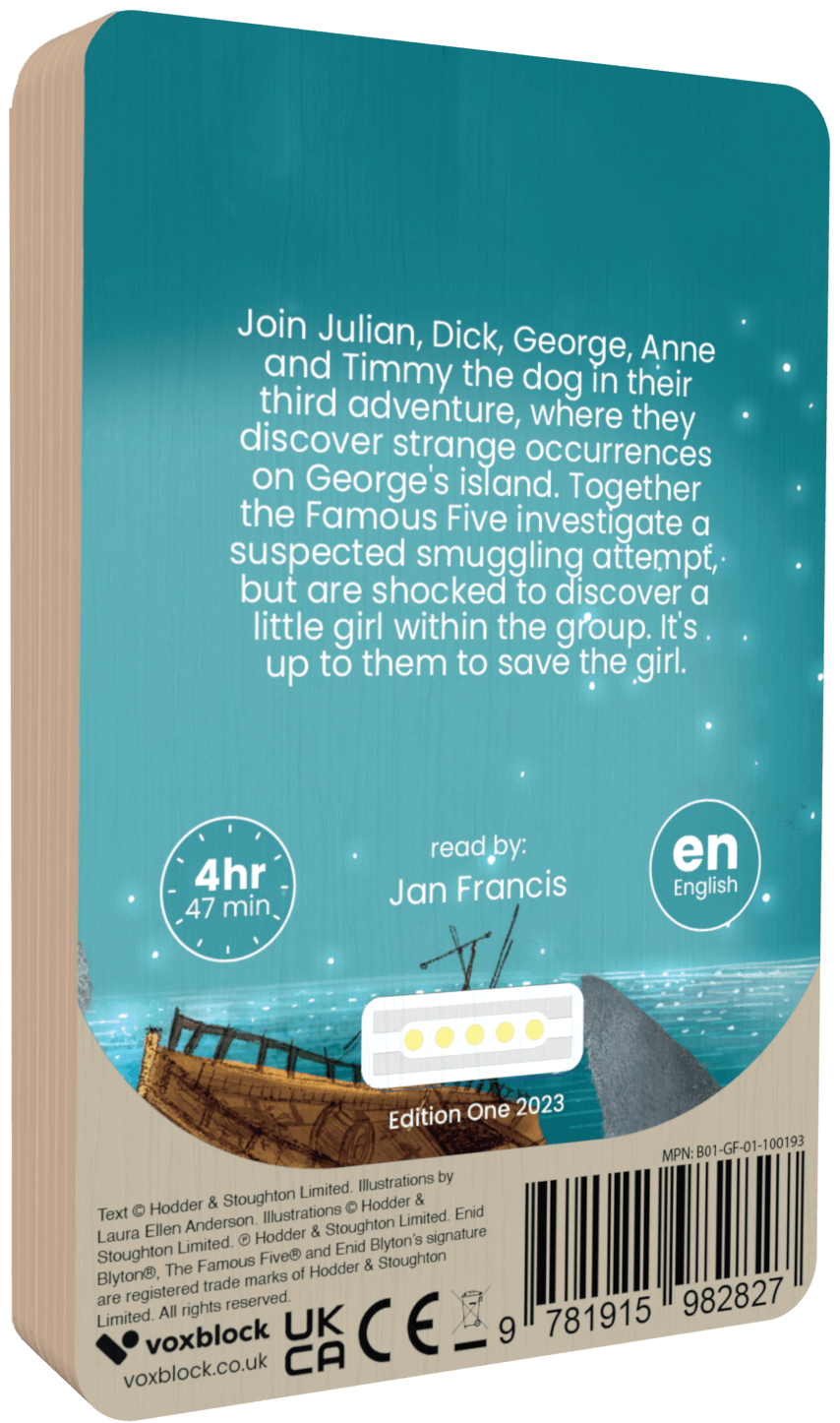 Join Julian, Dick, George, Anne and Timmy the dog in their third adventure, where they discover strange occurrences on George's home island. When the Famous Five are left in the care of the mean cook and her son, the Five decide to run away to Kirrin Island to escape. But, when they get to the island they discover what
