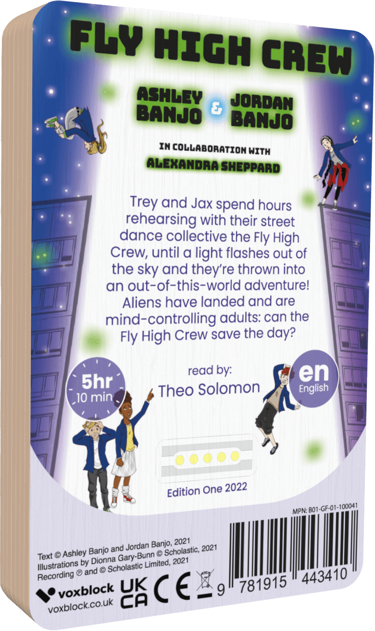 An action-packed, laugh-out-loud, high-energy story for boys and girls featuring adults taken over by aliens and a brave group of kids who must work together as a team to stop them! From TV personalities and Diversity street dance superstars, brothers Ashley and Jordan Banjo.