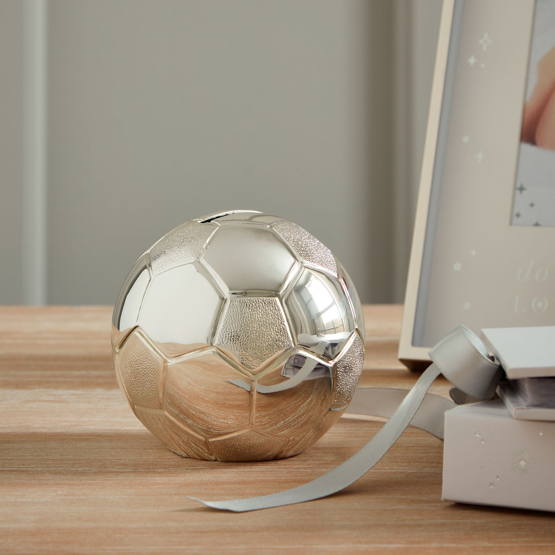 A silver plated football money box from BAMBINO BY JULIANA®.