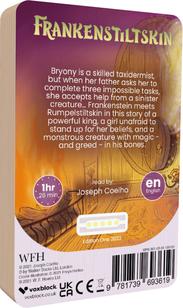 Frankenstein meets Rumpelstiltskin in this expertly stitched story about a powerful king, a girl unafraid to stand up for her beliefs and a monstrous little creature with magic - and greed - in his bones.