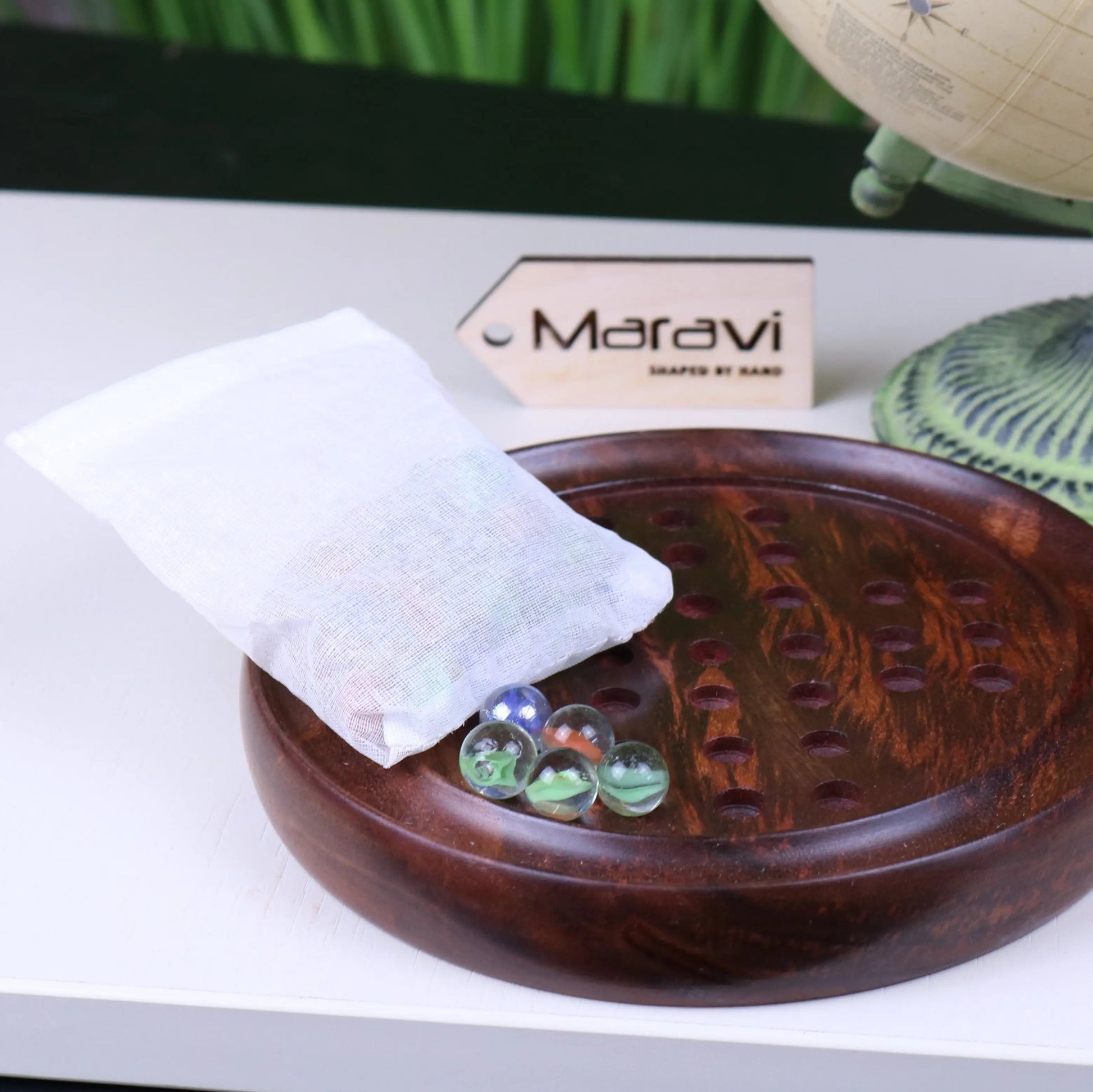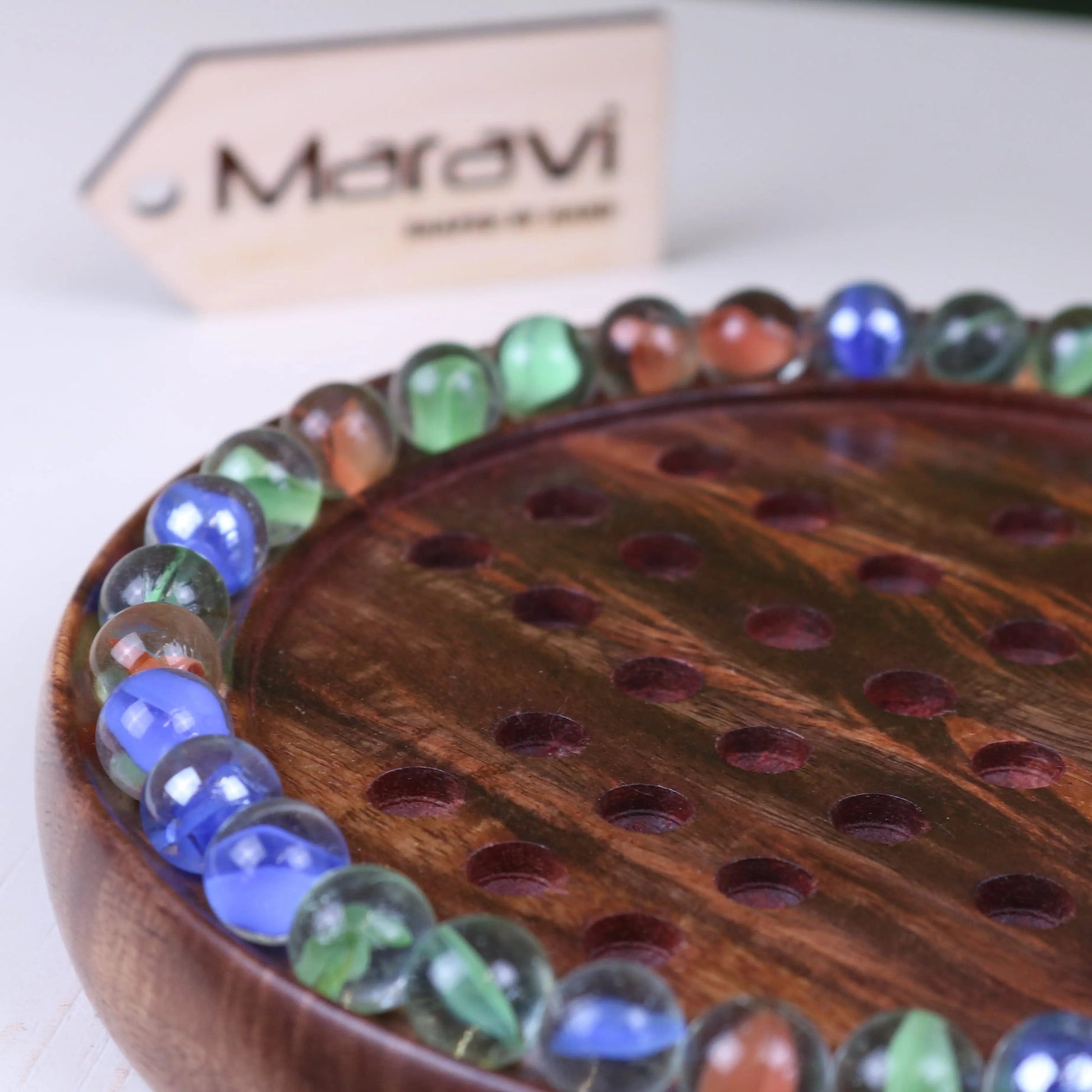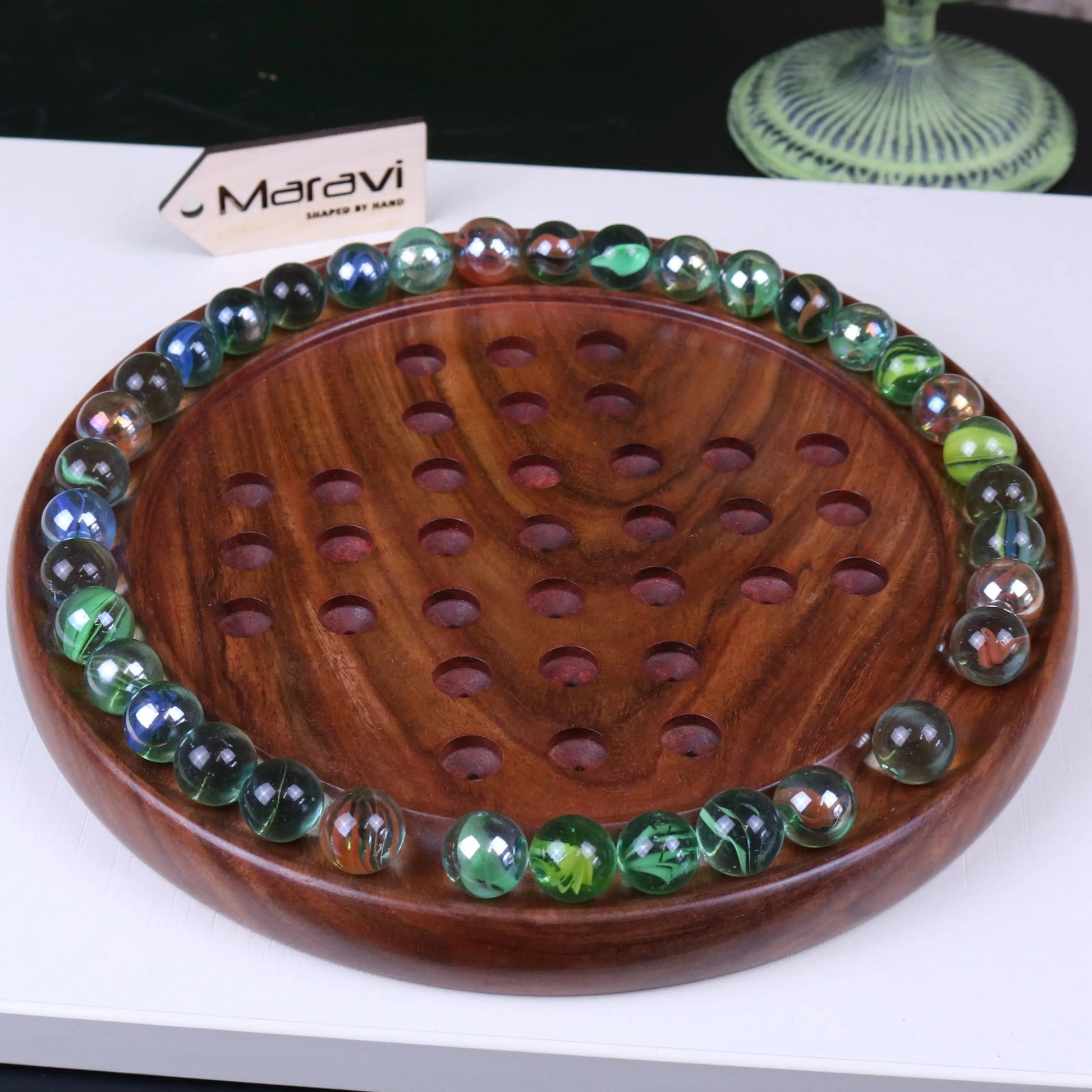 Glass Marbles: Comes with handmade glass marbles that add a touch of elegance to the game.