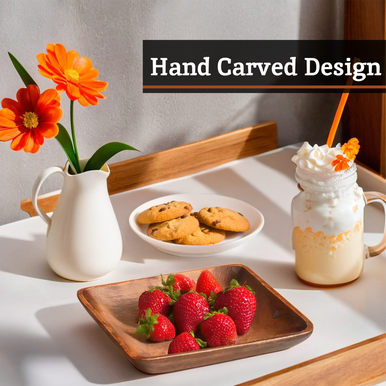 The durable wood has a natural dark and light grain that is accentuated by the skillfully hand carved curved square shape design, making it a fantastic focal point on your table or countertop.