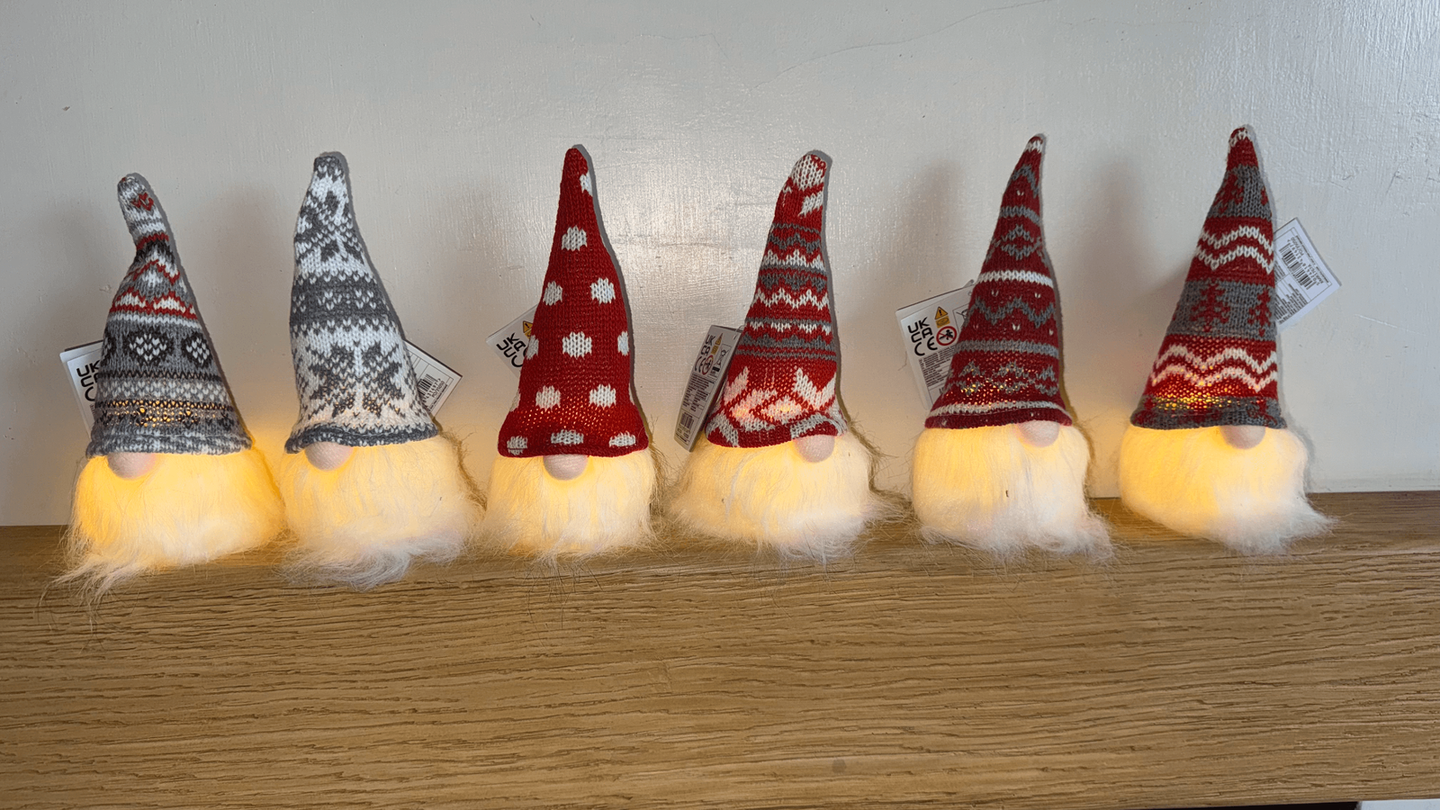 - These freestanding LED Gonk ornaments come in a variety of nordic style knitted hats.