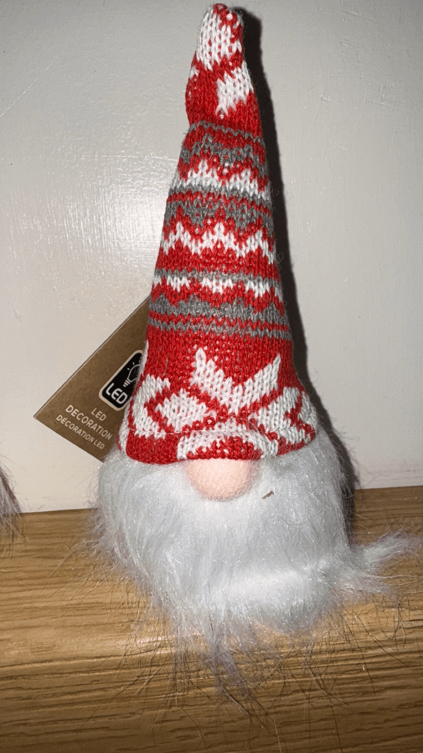 These freestanding LED Gonk ornaments come in a variety of nordic style knitted hats. Size approx: 18cm H x 8cm W x 8cm D Batteries included. Priced and sold individually.