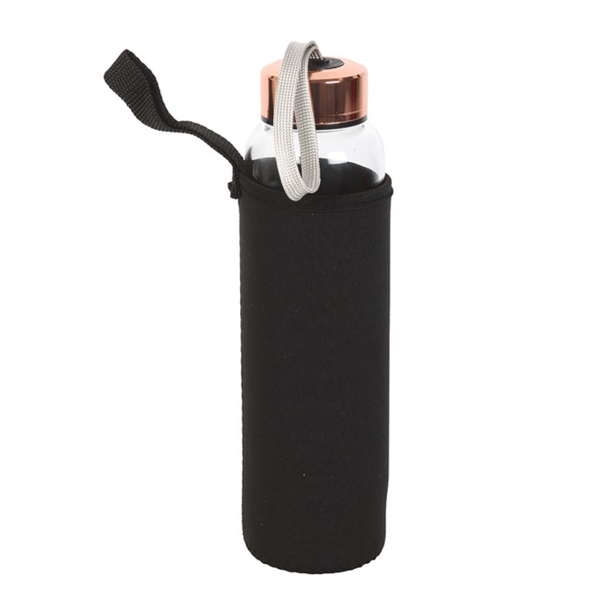 Take advantage of the claimed health benefits of clear quartz with this infused glass water bottle featuring a stunning luna moth design. Inside the bottle you'll find a natural clear quartz crystal point on a screw-off stainless steel base for easy cleaning, rubberised anti-slip bottom, stainless steel screw lid with