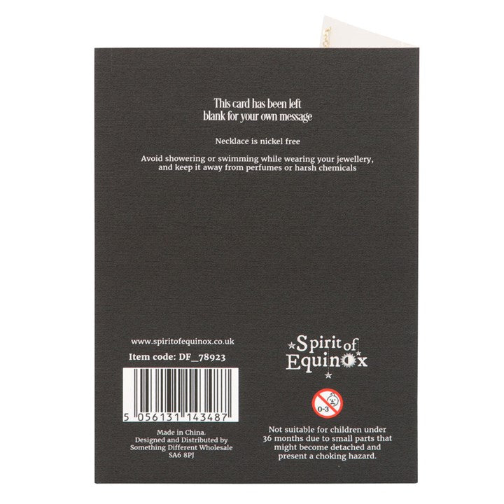 This ethereal luna moth necklace comes nestled on a matching greeting card, making it the perfect gift to celebrate new beginnings and personal growth. Includes gold-tone stainless steel moth and crescent moon charms on a 22cm nickel-free chain. Includes envelope. Card left blank inside.