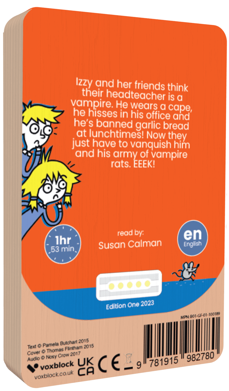 The third in a collection of wacky tales in the Baby Aliens series sees Izzy and her friends thrown into more primary-school craziness. This time, they decide that their new head teacher is a vampire rat, based on the fact he's slightly scary, only has the blinds drawn in his office during the day and the fact he's ban