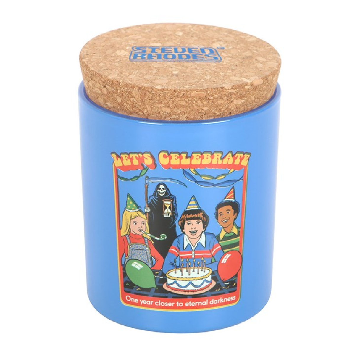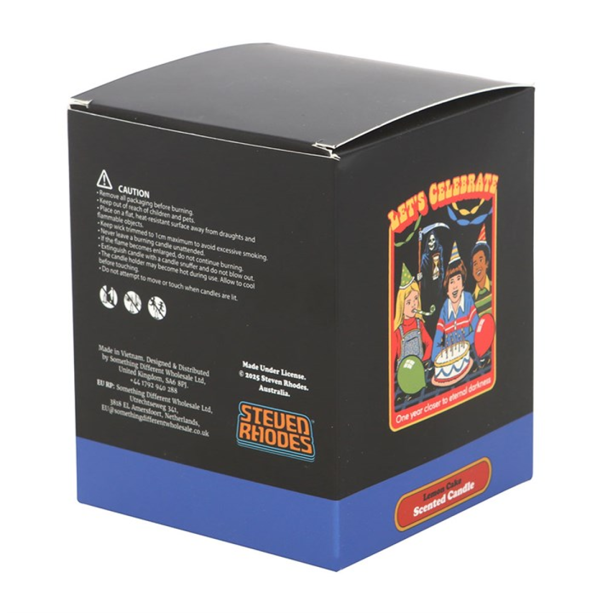 Celebrate another trip around the sun and one step closer to the void with this zesty lemon cake scented candle. Sweet, citrusy, and served with a healthy dose of existential dread. Great for birthday parties and pretending you’re happy to be there. 35-hour total burn time. Paraffin wax. Officially licensed Steven Rhod