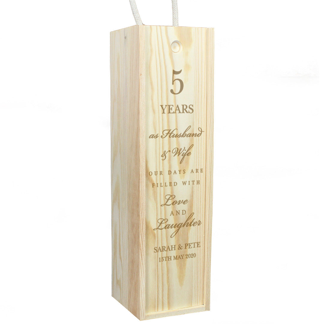Personalised Anniversary Wooden Wine Bottle Gift Box