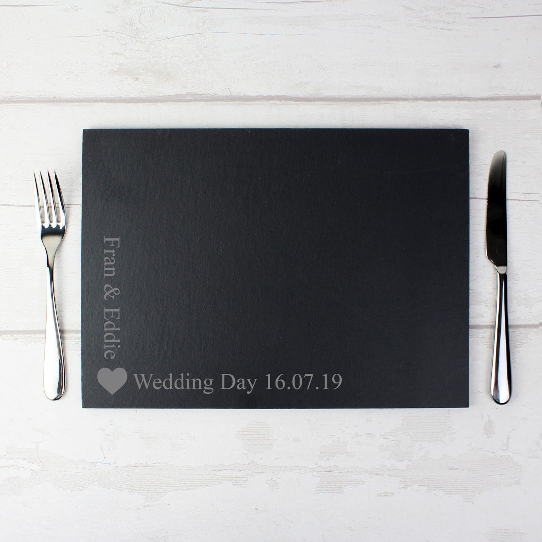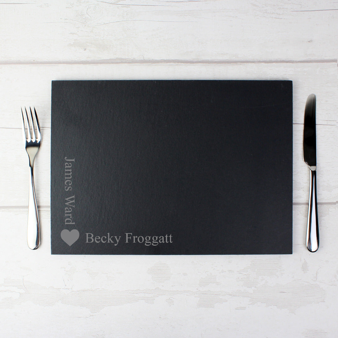 - Personalise this Heart Motif Slate Board with two lines of 25 characters, in the corner of the product.