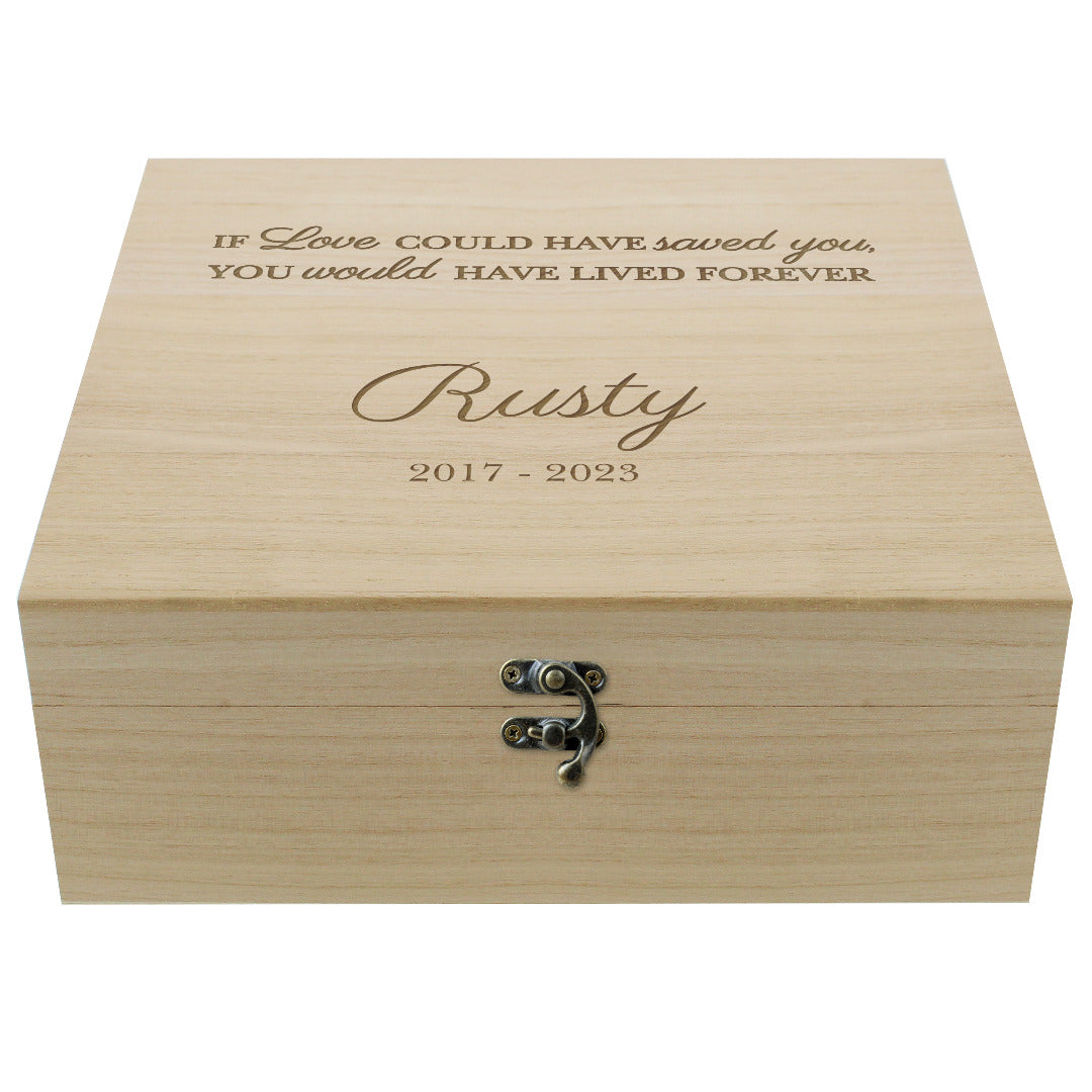 - This Personalised Pet Memorial Large Wooden Keepsake Box is the perfect place to store your pets keepsakes to hold them in your memories forever.