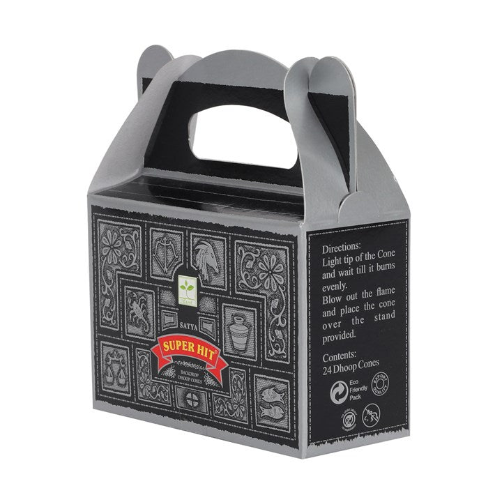 This display box contains 6 packs of beautifully scented Superhit backflow incense cones developed by Satya. The cones are crafted using the highest quality ingredients to offer longlasting fragrance. Use these cones with a backflow incense burner to create stunning smoke displays.