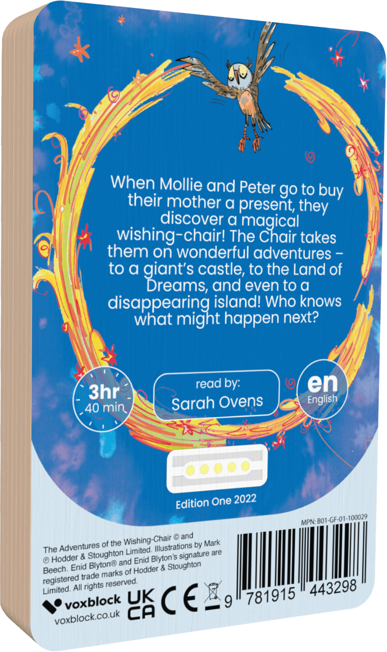 Set off a magical adventure with the first book in Enid Blyton’s classic fantasy series about a chair that can fly and grant wishes! When Mollie and Peter go to buy their mother a birthday present, they discover the most extraordinary thing: a magical wishing-chair! The Wishing-Chair takes them on some wonderful advent