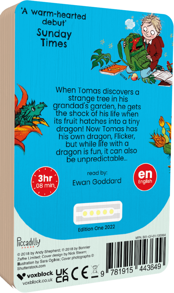 When Tomas discovers a strange old tree at the bottom of his grandad's garden, he doesn't think much of it. But he takes the funny fruit from the tree back into the house - and gets the shock and delight of his life when a tiny dragon hatches! The tree is a dragonfruit tree, and Tomas has got his very own dragon, Flicker....