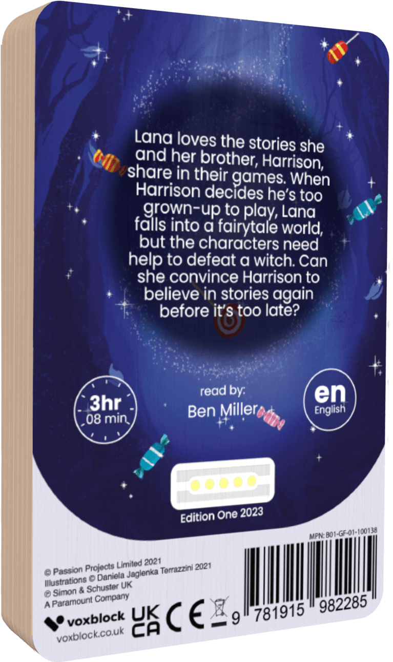 Lana and her brother, Harrison, used to love playing together – until Harrison decided he was too old for games. But when a trip to the supermarket uncovers a magical portal to the world of fairytales, Lana discovers that stories aren’t a game. With the fairytale world in danger, can Lana convince Harrison to believe