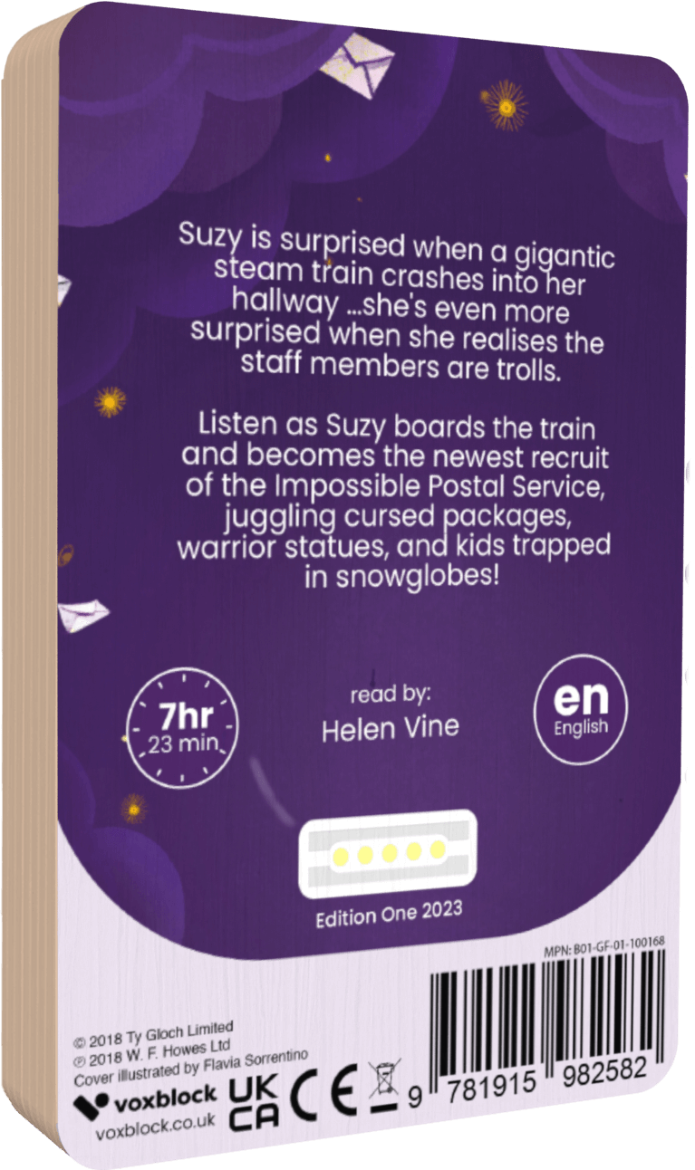 This story features Suzy Smith, a young girl who discovers a magical mail train in her living room one night. She unexpectedly becomes the train's postal worker and embarks on a fantastical journey to deliver mail across the Union of Impossible Places, a realm with unpredictable rules. Listen as she encounters talking