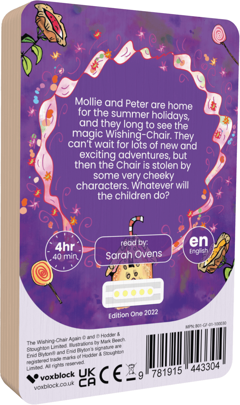 Fly away to magical lands with Peter and Mollie in the second adventure in Enid Blyton’s much-loved series! Perfect for children aged five and up.Mollie and Peter are home for the summer holidays, and they long to see their pixie friend Binky and their magic Wishing-Chair.They can’t wait for lots of new and exciting ad