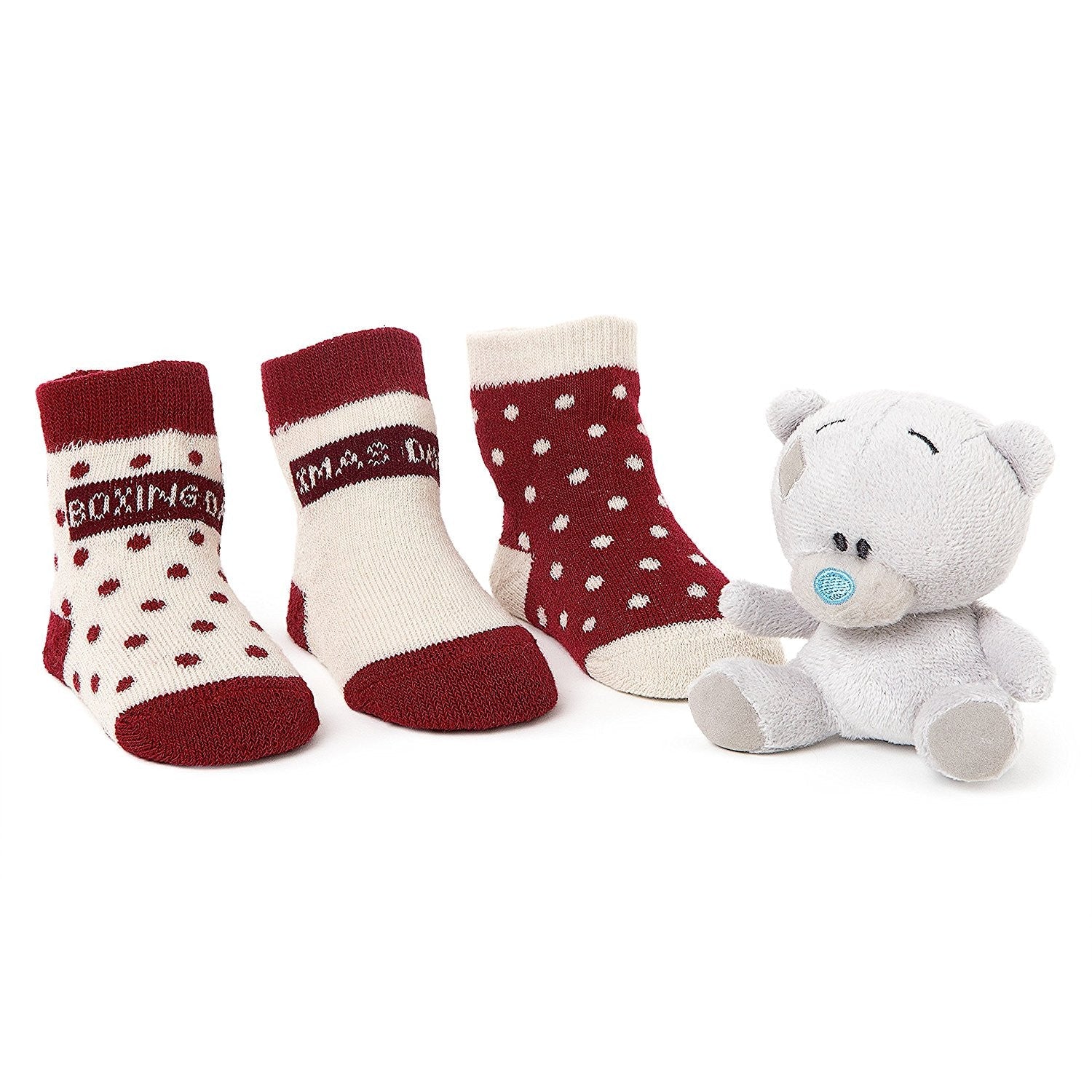 Tiny Tatty Teddy Me To You Soft Toy and Christmas Socks Gift Set Tiny Tatty Teddy sits 3.5" (9cm) soft toy Celebrate Christmas Day and Boxing Day with these cute socks dedicated to those days and one pair to wear all year round The perfect Christmas gift for little boys and little girls up to 12 month Tiny Tatty Teddy