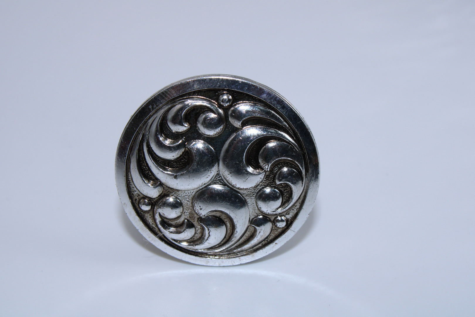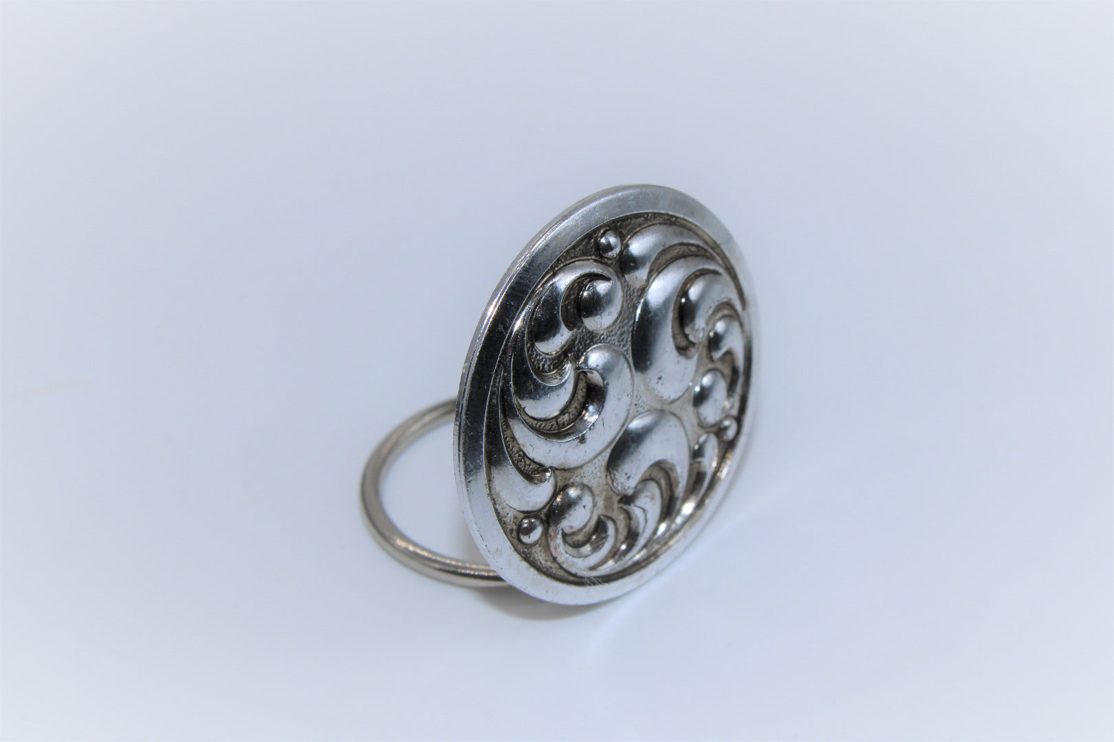 Vintage Silver Tone Scarf Ring Hallmark: No Size approx: 1" Diameter Condition: Pre-Owned, Good