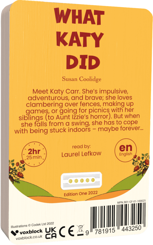 Meet Katy Carr. She’s Impulsive, gangly, adventurous, awkward and brave; she loves clambering over fences, sitting on roofs, making up games or going for picnics with her five brothers and sisters (much to the horror of her Aunt Izzie). But when she falls from a swing, she suddenly has to cope with being stuck indoors – maybe forever… What Katy Did is fresh, lively, funny and moving; and Katy herself is a warm and loving character that readers have taken to their hearts for over 130 years.