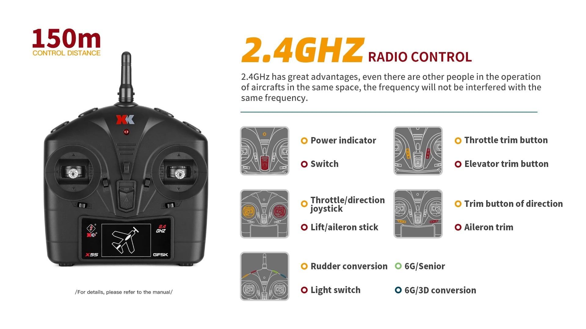 2.4GHz Frequency: Provides a stable, interference-free connection for seamless flying over long distances.